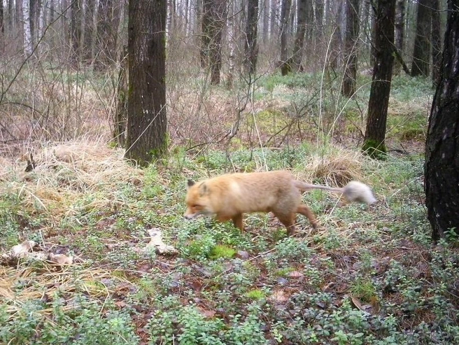 Краевед Павел Шалашов поделился в своем телеграм-канале «Мещерский тупик» фотографией попавшей в фотоловушку лисы.