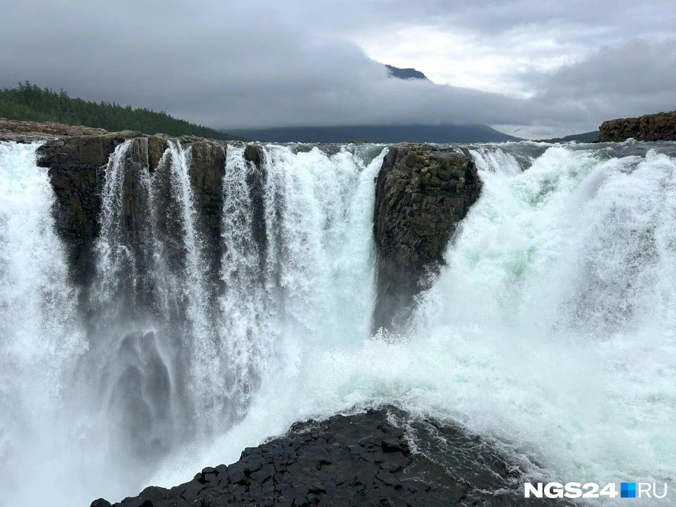 Да, если бы третью часть «Аватара» снимали в России, то начать съемки можно было здесь. Множество мощных потоков падают с высоты около тридцати метров в каменную чашу. Тундра, тайга, каменистые овраги, горы — всё как на ладони.