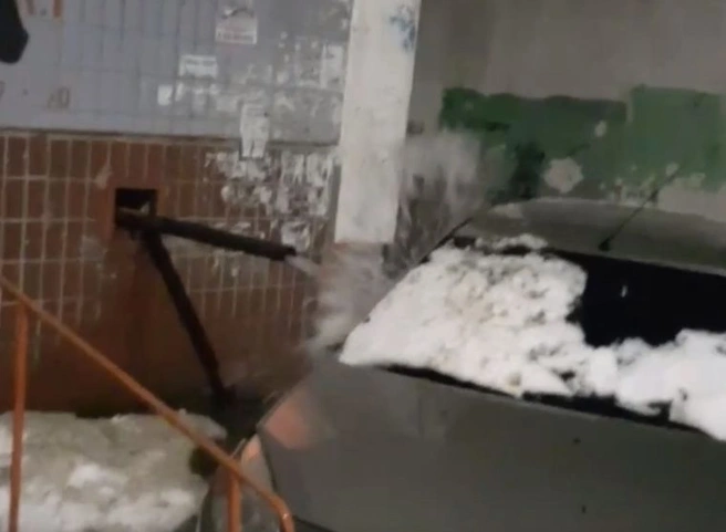 На нем видно, что машину как из душа поливает водой непонятного происхождения. Знает ли об этом хозяин автомобиля, неизвестно.