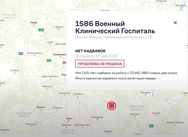 Рязанская область оказалась на «карте проблем» медиков во время эпидемии коронавируса, созданной «Альянсом врачей», пишет Медуза.