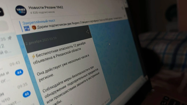 В Рязани и на территории всего региона ввели режим беспилотной опасности. О нем еще в 03:59 часов 12 декабря предупредили в РСЧС. Сообщение появилось в приложении.